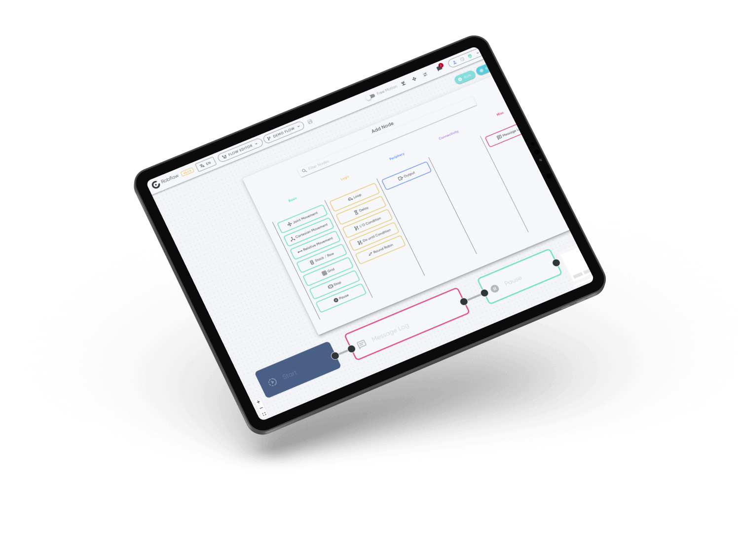 Our specially developed software is based on browser-based module programming. All you need is an internet-enabled device such as a laptop, tablet or smartphone and access to our platform. There, programming is very simple and flexible using blocks that are dragged and dropped into the appropriate place. Our Automation Guide will help you with the initial programming, and after answering a few questions, will suggest the optimum robot configuration for your specific needs. The digital twin of your robot can then be further configured and programmed in a realistic, digital environment. Thanks to the end-to-end complete solution with pre-programmed robots and no-code software, you can put your robot into operation within one day.